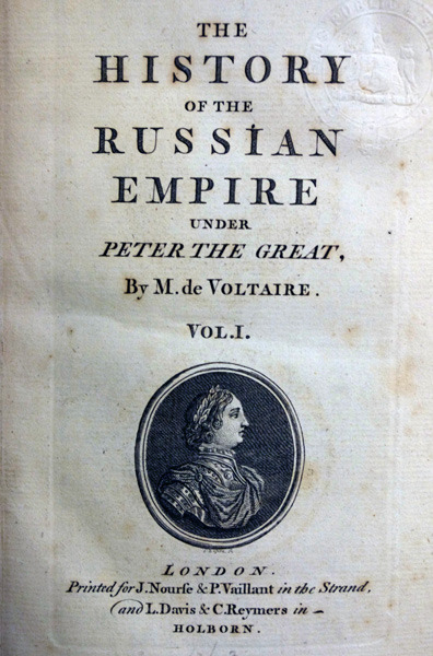 A French enlightenment writer, Voltaire’s 1763 ‘History of the Russian Empire under Peter the Great’ vol. 1 begins with the Preface: