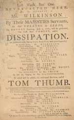 The earliest playbill we hold is from 1781 when the comedy ‘Dissipation’ was performed and it was noted on the playbill that this was ‘as performed at the Theatre Royal, Drury Lane, with great applause’ as well as ‘ the celebrated burletta Tom Thumb’.