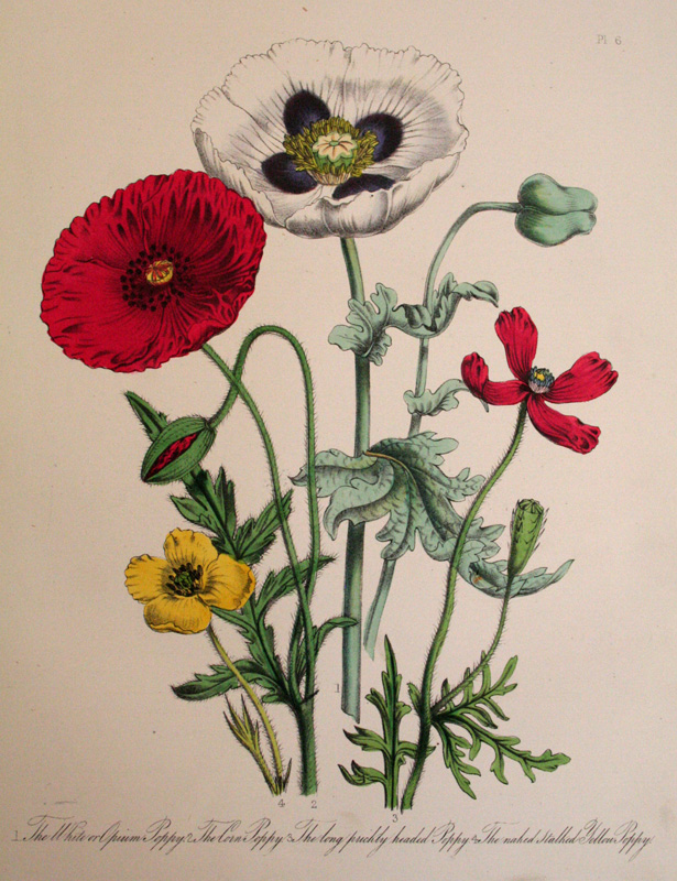 As wildflowers are becoming the choice for urban planting schemes as well as the meadow revival because of their bee friendly nature, I found a beautiful illustration of poppies in British Wild Flowers. They are certainly popping up all over the place this time of year a real treat and something to look out for.