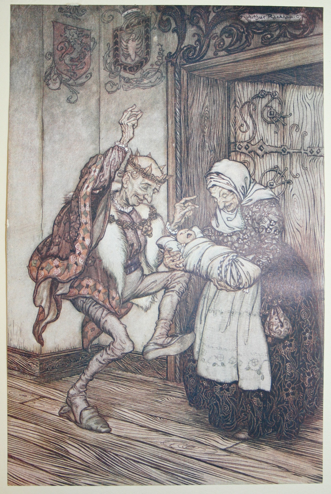 Our addition carries the illustrations of London artist Arthur Rackham who originally illustrated the tales in black and white before reworking them into colour. Rackham’s illustrations beautifully bring the stories to life