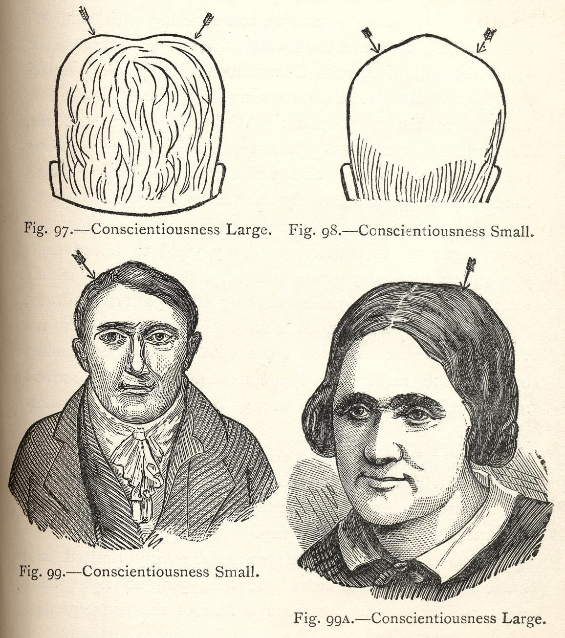 So how “conscientious” are you? If the crown of your head pops outward like the yolk of a fried egg then, sadly, you must possess a very feeble sense of moral duty. If, however, it turns pleasantly inward, surrounded by mountainous mounds of Prudence and Dexterity, you can count yourself as scrupulously exact in matters of right. Give yourself a pat on the back – and then check your scalp to see how big your Pride bump is.
