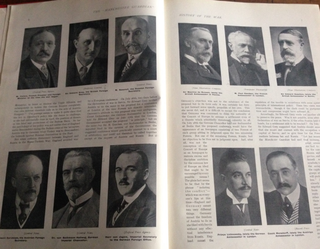 A photographic gallery from the Manchester Guardian History of the War: Volume 1, showing some of the leading figures in the diplomatic manoeuvres of the ‘July Crisis’