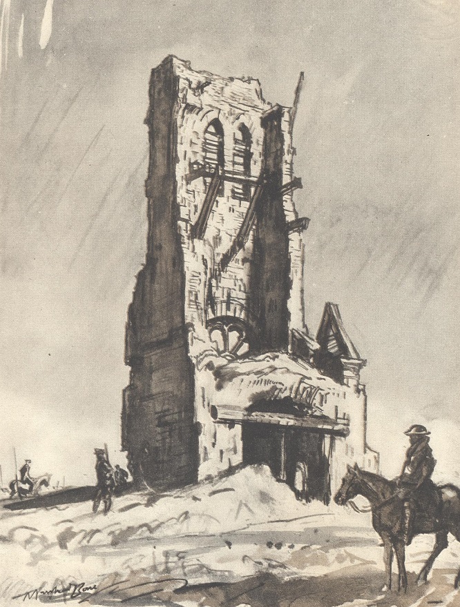 One of our earliest titles is a 1917 publication called ‘The Western Front: Drawings by Muirhead Bone‘ (available for reference use). Muirhead Bone was a Scottish draughtsman and etcher who became Britain’s first official war artist. Commissioned the British Government in 1916, Bone produced eyewitness wartime images that were used for propaganda and information purposes.