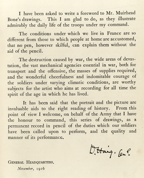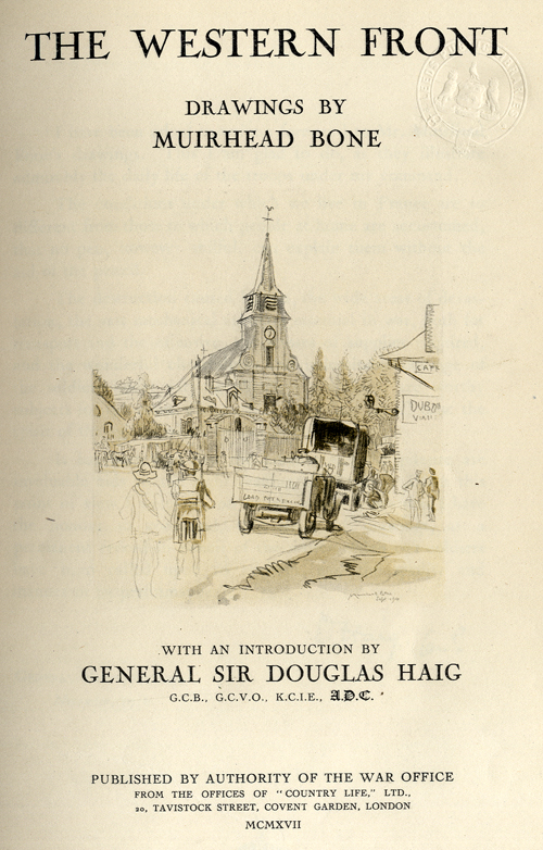 ‘The Western Front’ contains over 200 drawings, which Bone produced during visits to war-torn France and other locations such as shipyards and munitions factories. The drawings are preceded by an introduction which is attributed to Field Marshal Douglas Haig (although this may have been written by an assistant).