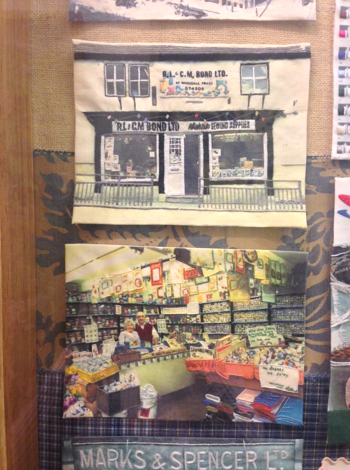 A really nice example that we showed the children from Farsley which is on the ‘Pins and Needles’ panel, is a couple of pieces representing Bonds shop. This is a haberdashery shop in Farsley, most of the children recognised the shop and created a really lovely connection for them to make. At the time the shop gave supplies to the project and became a sponsor in return to feature on the tapestry.