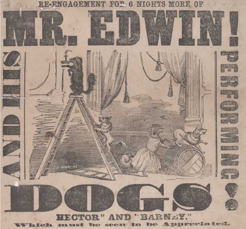 Next to the Princess theatre which was in King Charles Croft, the Leeds Casino and Concert Hall was opened by Joseph Hobson. In about 1856 Hobson extended the Casino into Lands Lane and re-named it The Royal Alhambra. A playbill from 1859 gives an example of the kind of entertainment put on there; it features, among other things, ‘Mr. Edwin and his performing Dogs’.