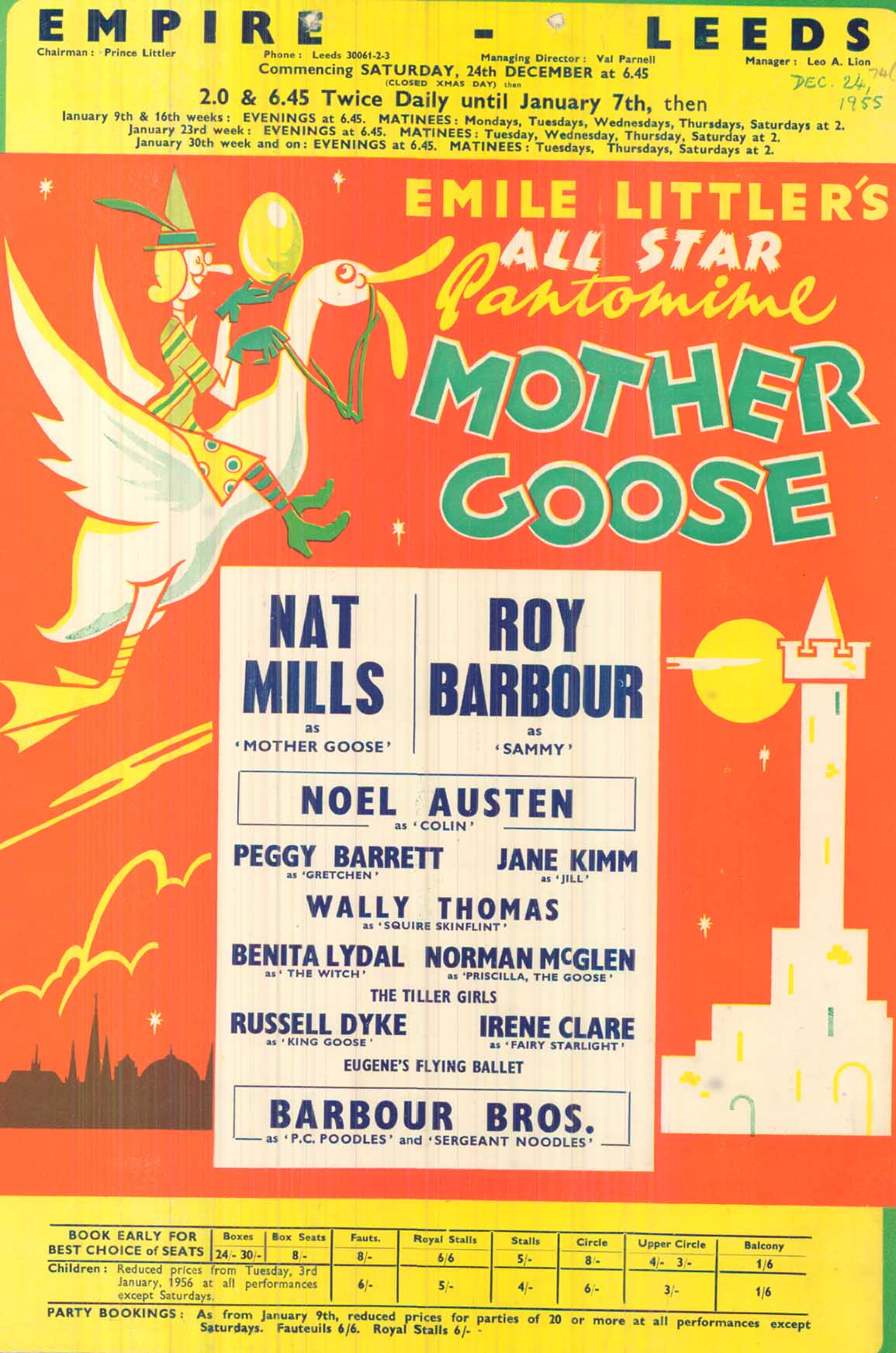 “When the programme was over most of the party returned home by car in dense fog but a few, more intrepid than the rest retired to The Ship where Pierre proved once more his renowned hospitality. Later the select group of drinkers were joined by the Principal Boy and the Principal Girl from the Leeds Empire pantomime. The Principal Boy proved to be an adept at the art of telling jokes and had the whole group in fits of laughter.