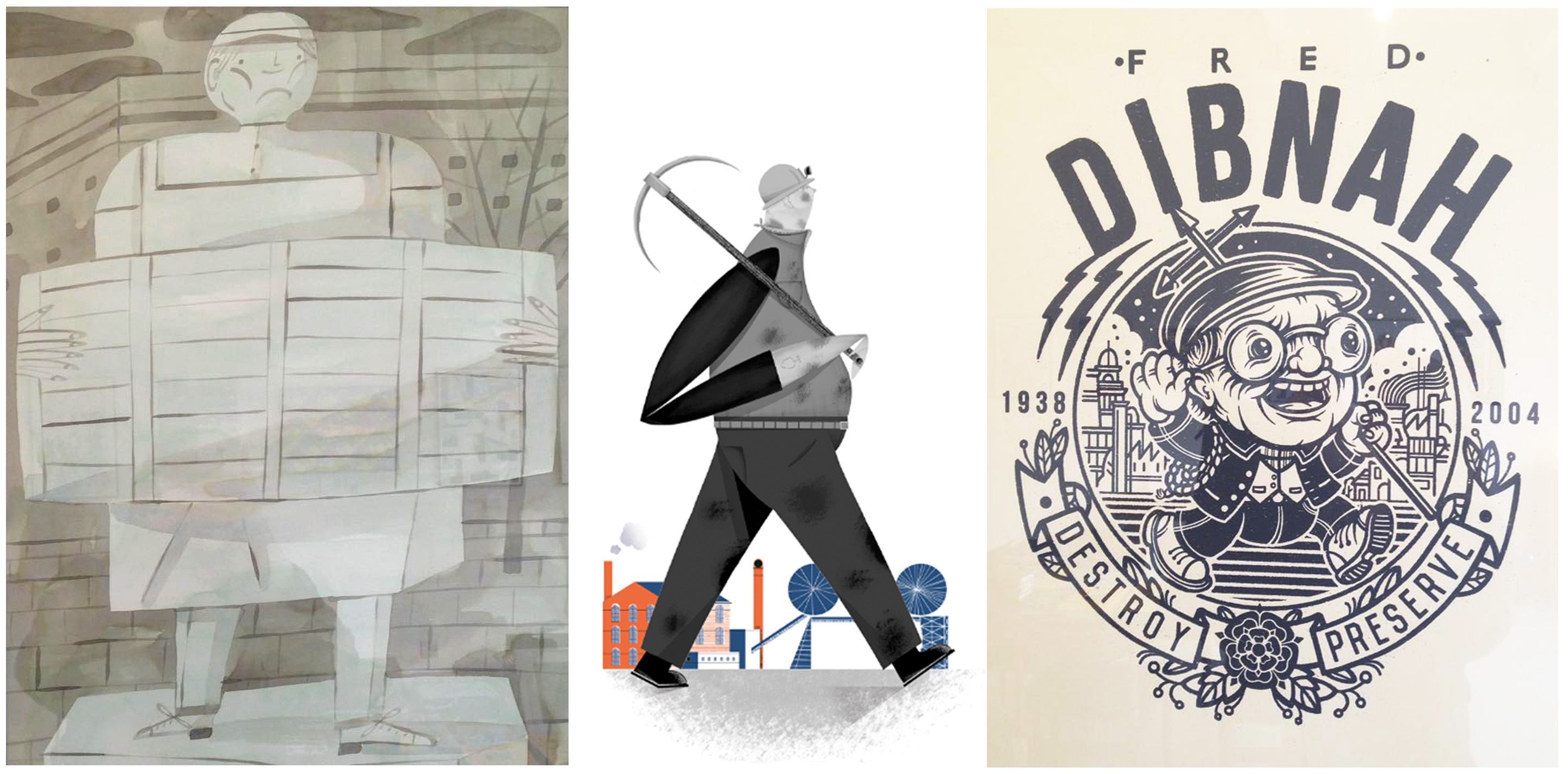 Nods to our industrial past and present are illustrated through familiar faces. Michael Driver’s work of a sooty-faced miner is cheerfully wistful, and the Leeds-savvy will recognise Matthew Hodson’s ‘Barrel Man’ – a painting of the statue that stands outside the St. John’s Centre and commemorates the twinning of Leeds and German town Dortmund. The contribution of Drew Millward’s portrait of engineering enthusiast and TV personality Fred Dibnah offers a deeper exploration into our changing relationship towards heritage, with ‘Destroy’ & ‘Preserve’ serving as a comment on Dibnah’s career, with Millward adding – “It was always interesting to see the evolution of his TV work, from what was essentially a documentary about knocking down buildings, to a much more educational approach, focusing on restoration and preservation.”