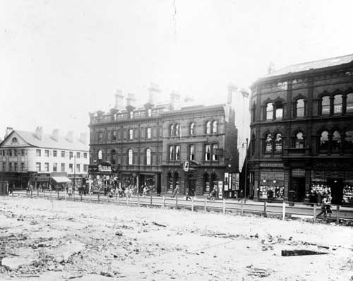 Yes, that’s it, towards the right of the image. The photo shows the south side of the Headrow, of course, with the top of Briggate visible beside the white building on the left (which is soon to reopen as a new Samsung store). The big difference is the open land in the foreground… In order to stand in this position today, you’d probably have to jog along at the top of an escalator inside TK Maxx, as if you were on a treadmill. Back in the early Thirties, the block had been cleared in preparation for the building of the new Lewis’s department store, which opened in 1932 and lasted until the 1990s.