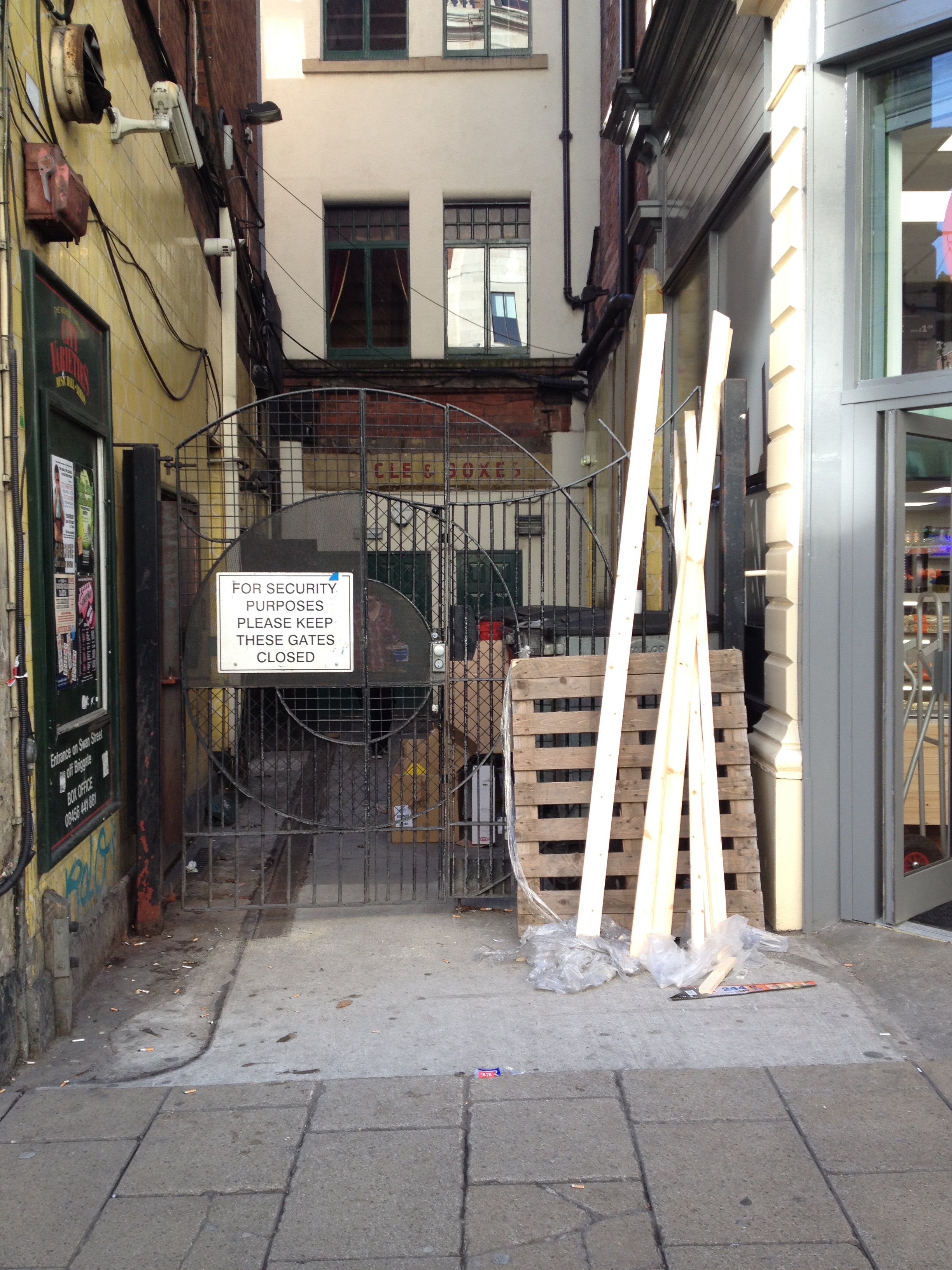Now that the remodeling work has finished on the new sandwich shop, Simply Eat, next-door to the traditional Headrow pub, the Horse and Trumpet, it’s safe to once again poke your nose through that rather arty circular gate to the rear of the City Varieties Music Hall.