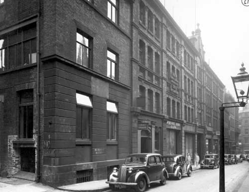 We cannot tell from his article which of these 1925 broadcasts Errington is describing but, whenever it was, he deplored having to climb the stairs to what must have been the upper floors of the Cabinet Chambers on Lower Basinghall Street, for that was the home of 2LS Leeds from its inception, with much civic fanfare, in July 1924 (Briggs, 1975, p.171). Cabinet Chambers has long gone but we can see from this later photograph from Leodis how it might have looked in 1925 – though with fewer cars: