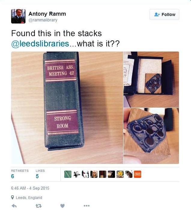 EDIT: You can now find this British Association for the Advancement of Science printing block on our catalogue. Please contact the Local and Family History department to arrange a viewing.