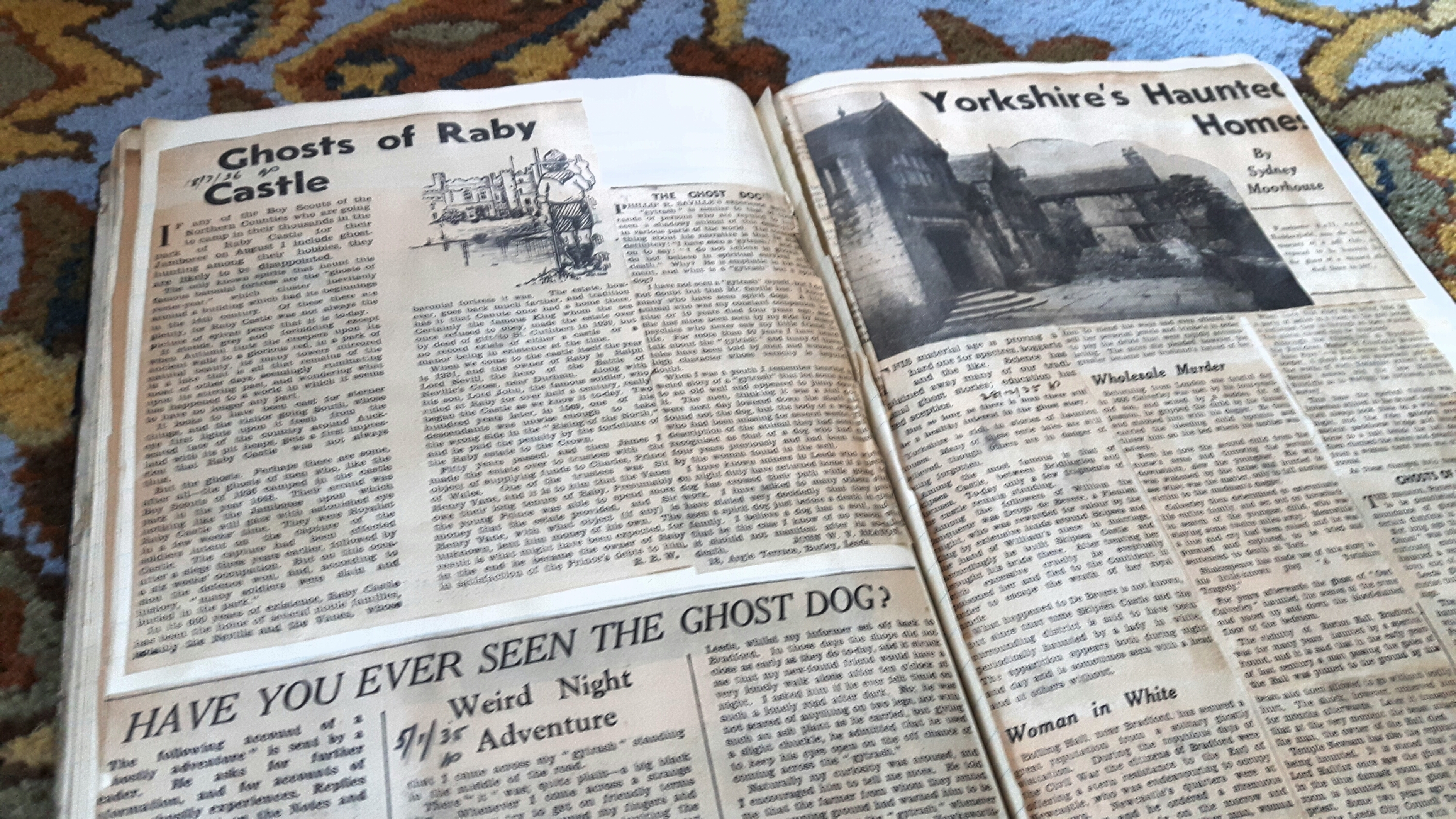 This spooky scrapbook was introduced by Ross from our Local and Family History department. He says: “The biggest mystery about Ghost Stories & Weird Experiences; Life After Death &c is who compiled it, but we’re equally unsure how it ended up in the library. I like to think someone discovered it in an attic and was too scared either to keep or destroy it. It’s a scrapbook of supernaturally-themed newspaper cuttings running from the 1920s to the 1940s, beginning with quaint tales of polite hauntings in stately homes, but gradually darkening and becoming more eccentric in its interests until (after a particularly gruesome tale of voodoo) it suddenly stops. In appropriately creepy fashion, the final pages of the book are blank…”
