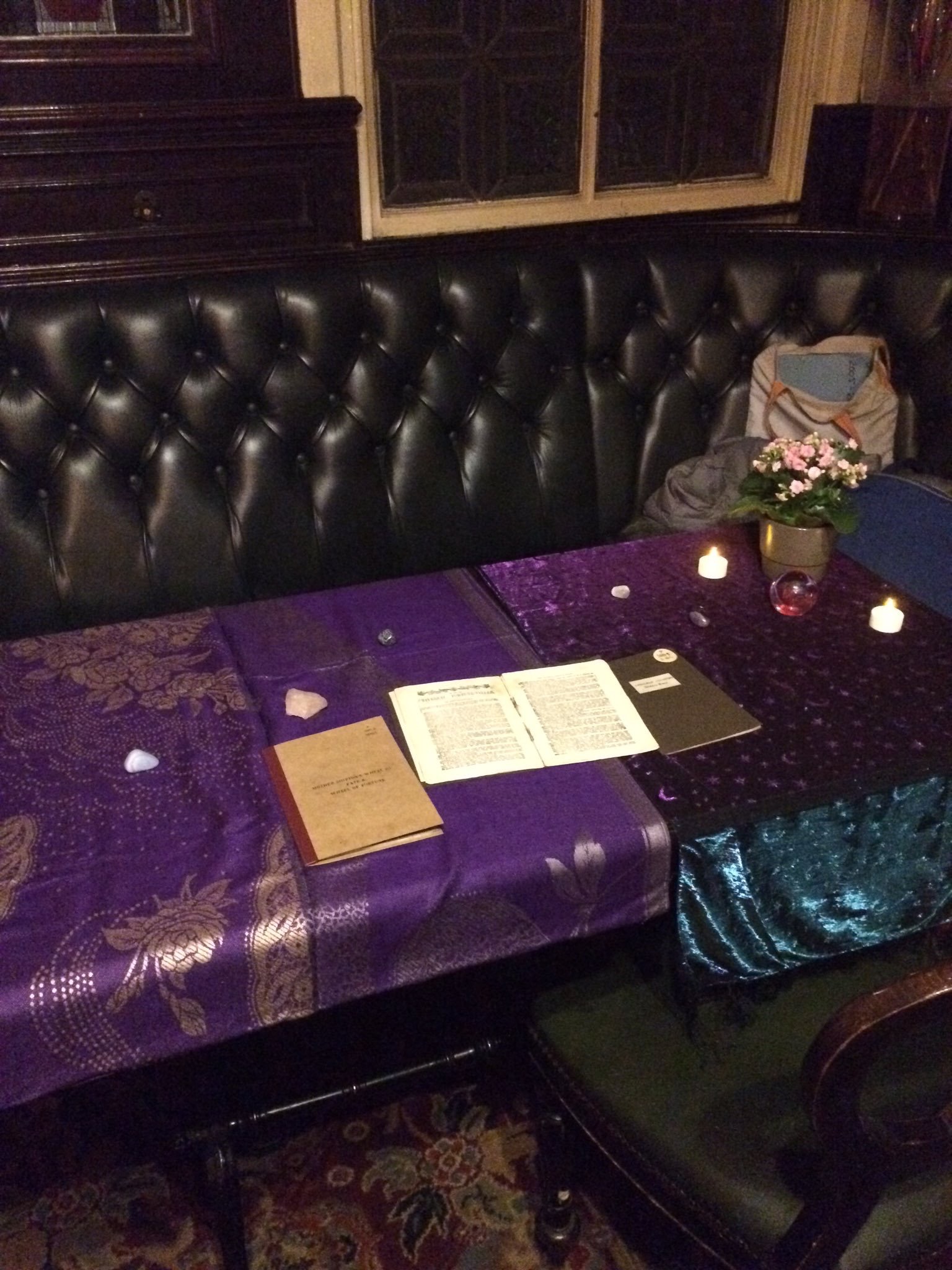 Working pretty much as you might expect (or not! this was the first time we’d ever run an event like this and even we weren’t sure exactly what might happen…) – eight Librarians (including representatives from the Brotherton Library at the University of Leeds) sat at eight tables with eight members of the public. Each Librarian then spoke – passionately! – about their individually-selected item for three minutes, before a beautiful old-fashioned bell was ding-donged and each of our guests moved on to the next table, to be lovingly introduced to a new library treasure.
