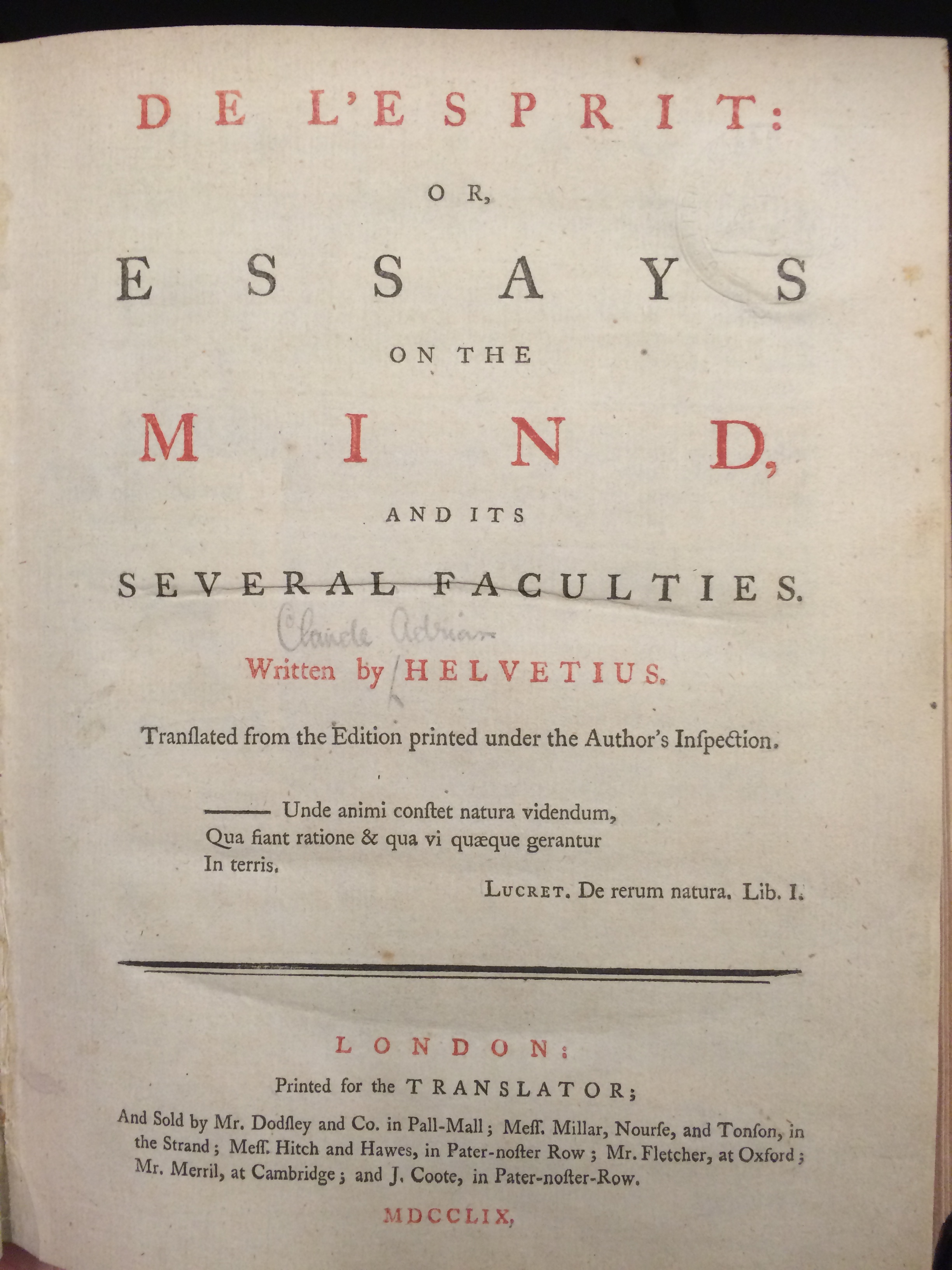 Highlights from our Special Collections: Helvetius’ De l’esprit