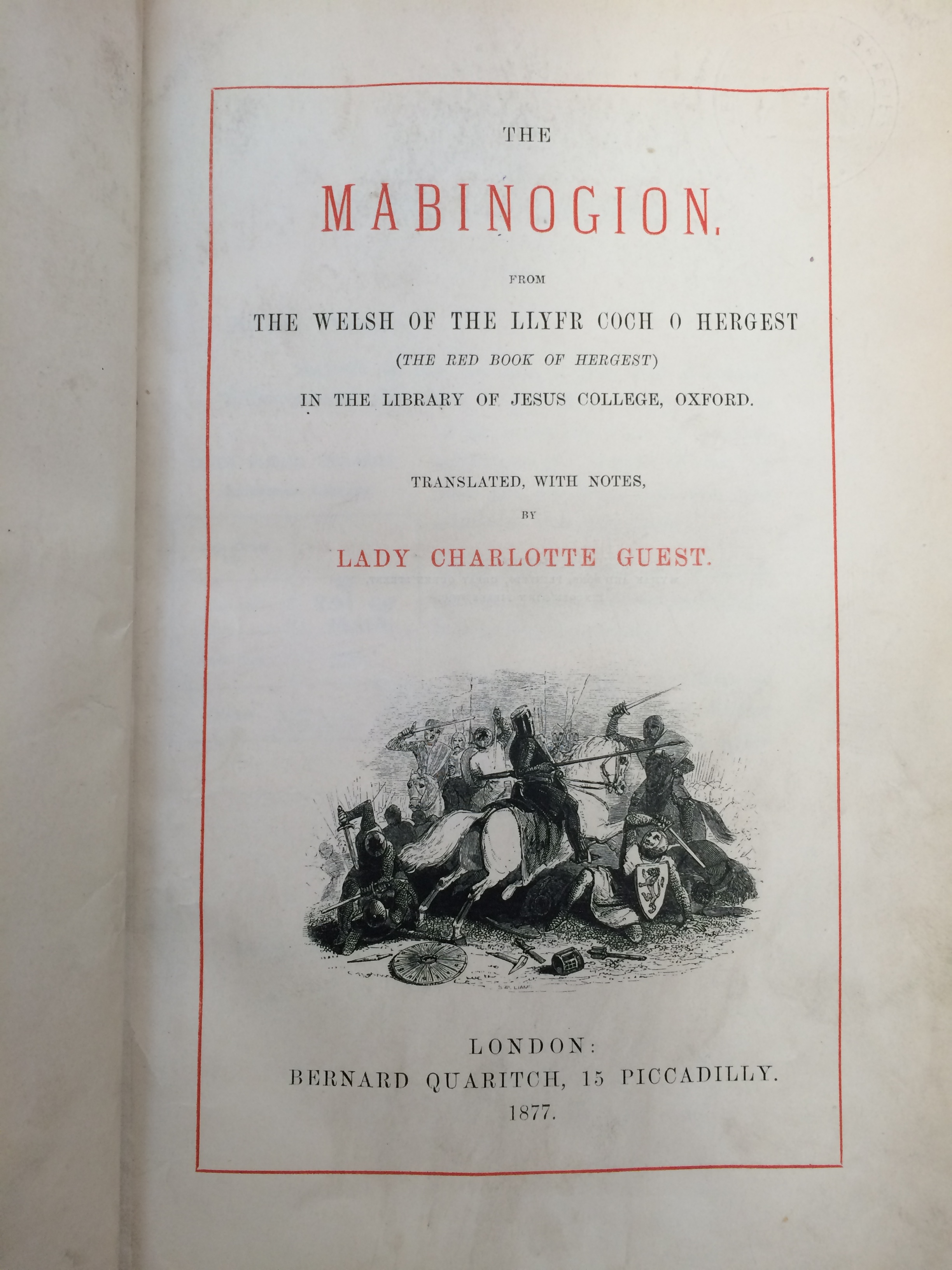 That 1877 publication is the one that proved to be the most widely-read and is the edition we hold today. Translated by Lady Charlotte Guest, this edition remained the standard version of the Mabinogion until the 1948 translation by Gwyn Jones and Thomas Jones – a copy of which we also hold here at the Central Library, along with further translations and complementary works of criticism and analysis.