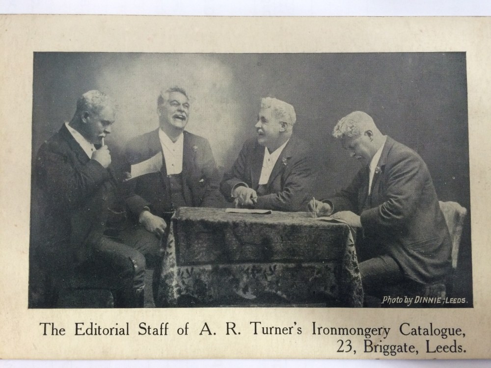 And then there is the photograph-postcard. Showing “The Editorial Staff of A. R. Turner’s Ironmongery Catalogue”, this seems a startlingly modern image – both in its technique and its effect: a kind of mocking self-awareness suffused with an ironic playfulness.