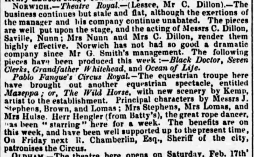 Whatever his start in life in Norwich we do know William returned as Pablo. He came to the city in 1849 with an “equestrian spectacle” and rope dancers. 4 That must have been quite a sight!