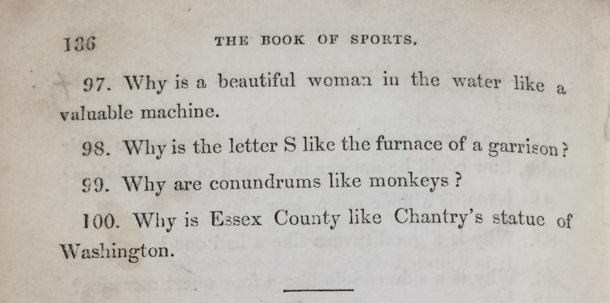 It’s hard not to read any of this without concluding that Martin’s insistence on liberty, virile health and rational industry is in some way related to the British imperial project of the 19th-century. That may well be the case, and we may now look at a text like this from a position of implicit superiority. But does any of that get us any closer to successfully answering the 100 Conundrums at the book’s end? I suspect not!
