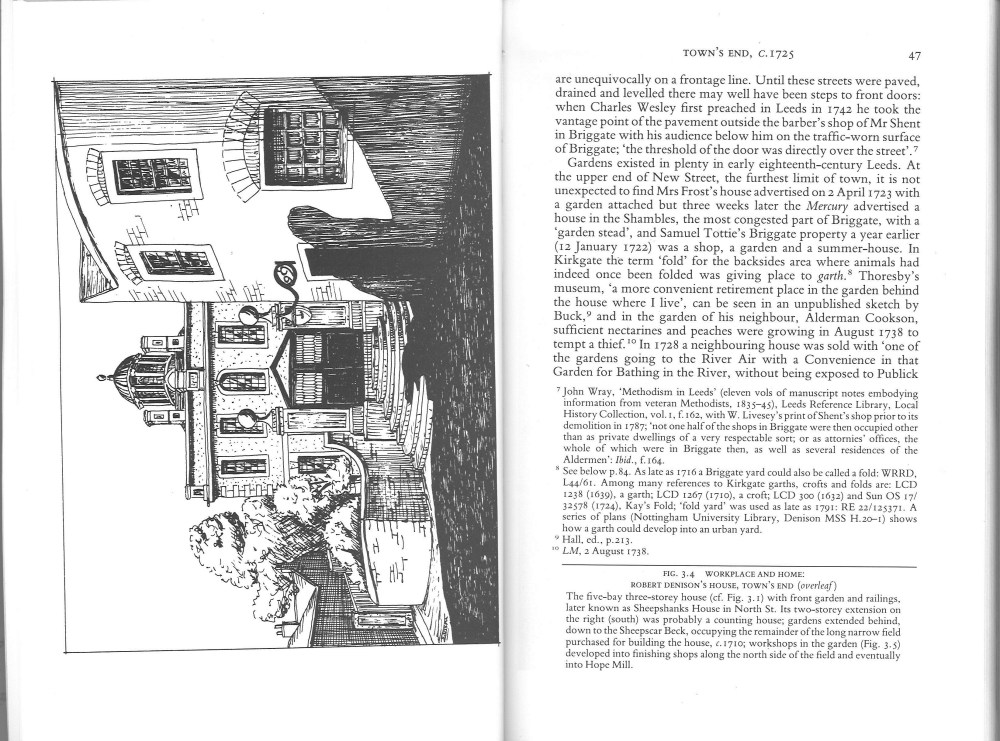 Most memorable, perhaps, is Maurice Beresford’s use of the descriptive appearance of William Shent’s barber shop, which formed part of a broader argument about the changing development of the Leeds urban landscape from the 17th to the 19th-centuries (the first Methodist preaching in Leeds took place outside Shent’s shop in 1743).