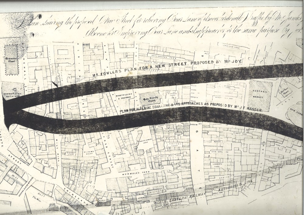 Some examples: a large group of the Leeds map collection relate to town development and, specifically, to proposed or real changes to buildings and transport routes. The language of these maps and plans, both visual and textual (“improvements”), is technocratically sanguine, with a friction-less opacity that works to smooth away the contested nature of all urban negotiations. Non-elites – those without power; those whose lives are most often uprooted or devastated by such ‘improvements’ – are rarely represented or seen in these supposed ‘windows into the past’ (the old – if problematic – story of historical evidence favouring the ‘victors’).
