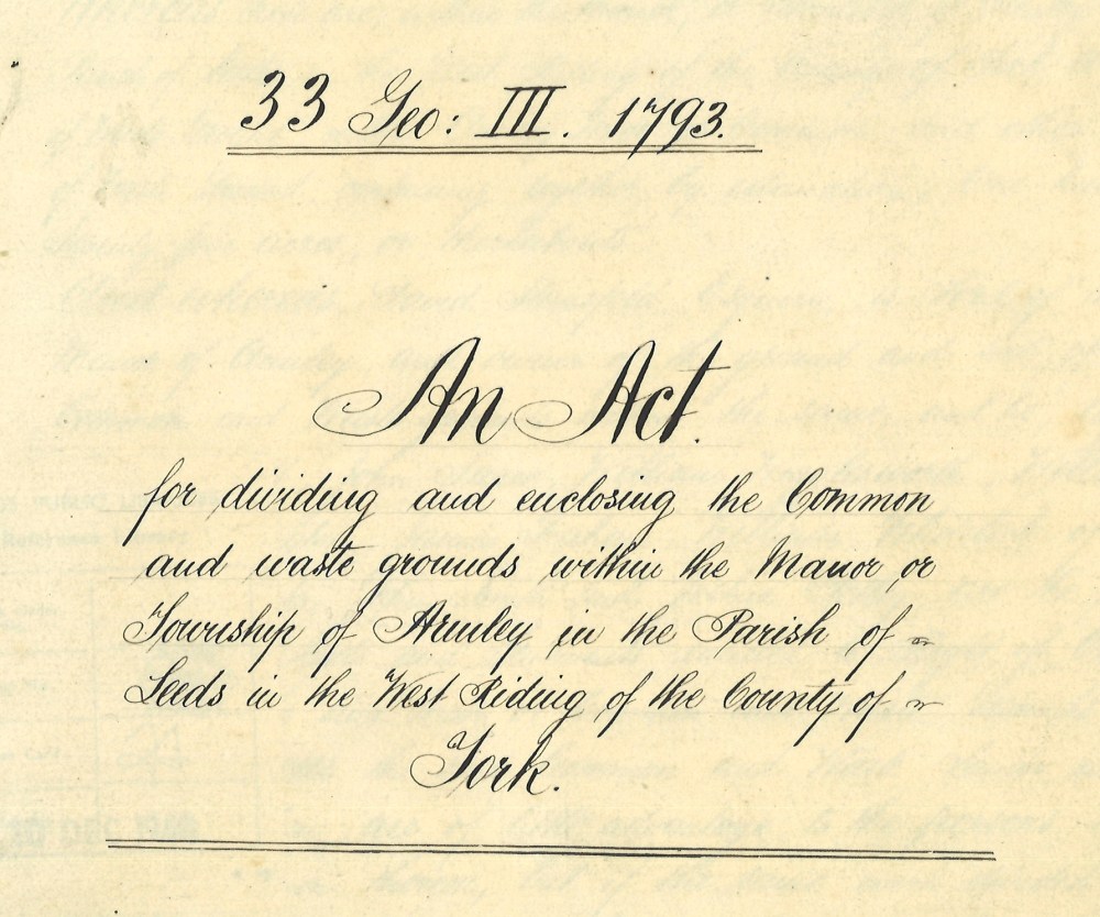 Thankfully, the Central Library also holds a magnificent 2005 book that provides a full transcription of the 1793 Act: E.A. Holmes’ A Moment in Time: The Armley Inclosure Act and Award of 1793.