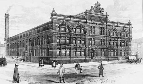 But in the 1850s, a new industry was established in Leeds – that of the ‘ready-made’ clothing industry – when John Barran established his first wholesale clothing factory in Alfred Street. By the 1930s, the industry was dominated by the so-called ‘multiple tailors’ who both manufactured and sold their own products, primarily men’s suits. These companies concentrated mostly on ‘made-to-measure’ as opposed to ‘ready-made’ suits. The customer would place an order for a suit in one of their retail outlets, and his choice of cloth, pattern, and also his measurements, would be sent back to the factory where a suit would be made to his exact specifications (and all without the aid of computer technology) before being sent back to the shop for the customer to try on.