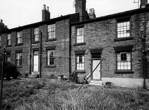 23rd June 1946, Two houses on Leak Terrace, number 20 is on the left, 18 on the right. Part of the notorious Hunslet Grange flats would be erected in this area after demolition of the old streets. The Hunslet Grange flats were built in the late 1960s, early 70s and within twenty years demolished. A major problem was damp and high cost of heating for tenants trying to combat the damp. Copyright: West Yorkshire Archive Service (available on www.leodis.net)