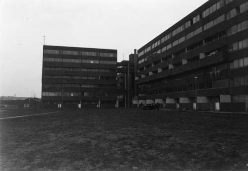 Hunslet Grange, also known as Leek Street flats, was built to replace a large area of terraced housing in south Leeds. The local authority and construction company hailed the development as innovative and modern, as it used new building methods and materials. Certainly, many residents moved from overcrowded terraced houses with shared outside toilets, to brand new flats with mod cons. They soon discovered, however, many serious faults resulting from the prefabricated structure: draught, cold and damp, combined with an electric heating system that was prohibitively expensive for the majority of tenants. After a lengthy campaign by Hunslet Grange tenants for a solution that would improve their living conditions, the flats were demolished in 1983.