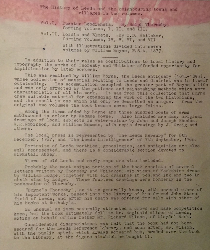 Librarian Antony Ramm takes a look at the deep history behind the creation of a celebrated Leeds antiquarian “masterpiece”. This article has been written to accompany the publication of a new Research Guide at the Central Library, exploring our Leeds Antiquarian Collection…