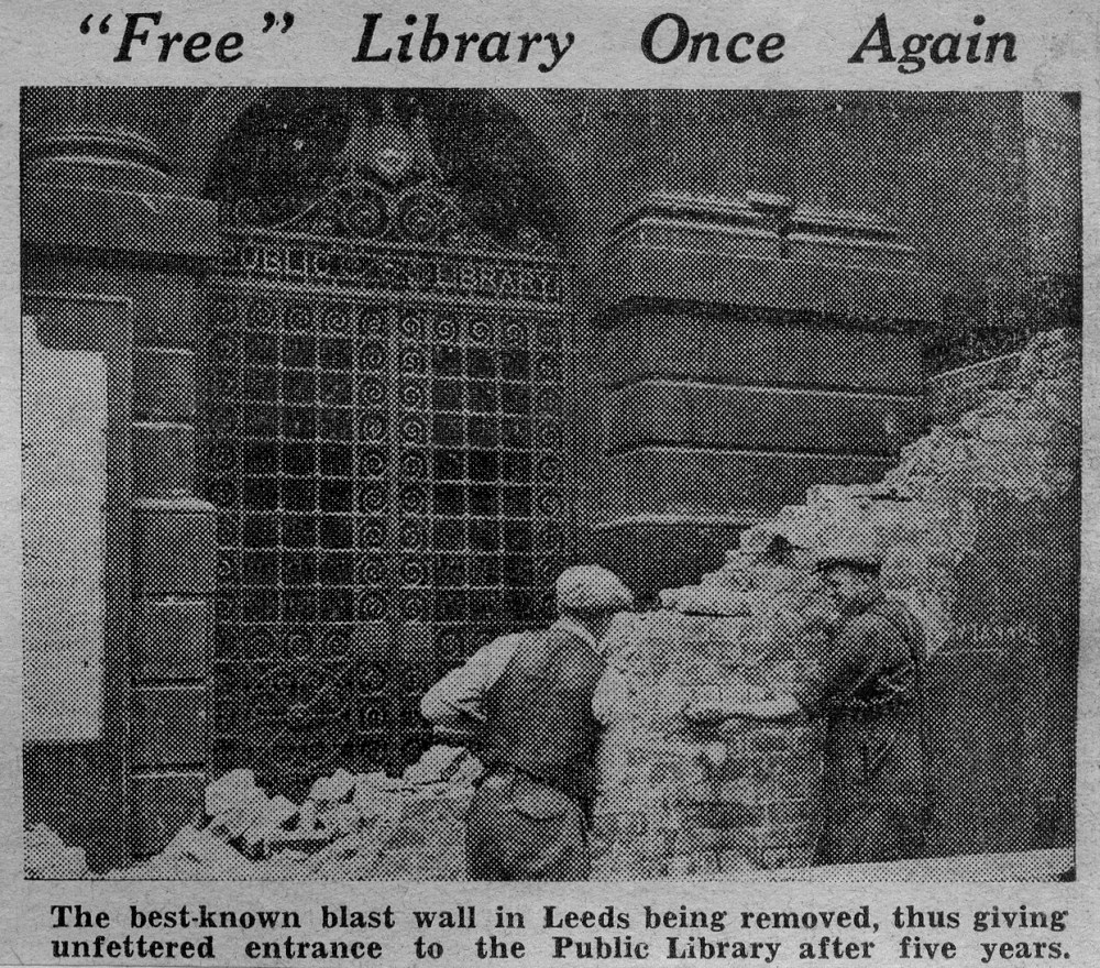 “Free Library Once Again” proclaimed the newspapers in June 1945 as the blast wall was removed from the Victoria Gardens entrance to the library, after 5 years people once again had full access to the building.