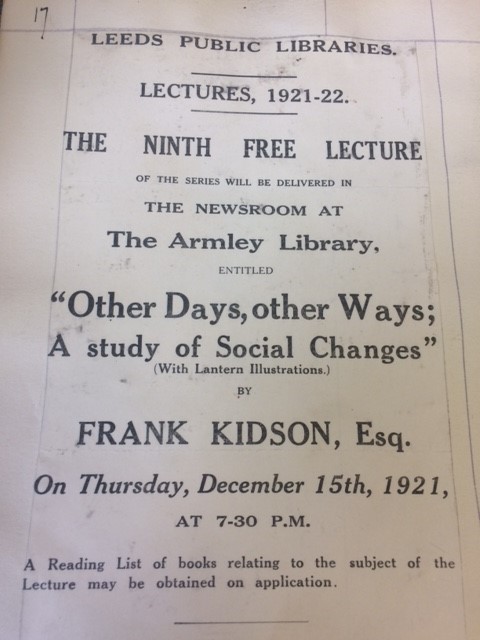 “The establishment of the very valuable Commercial and Technical Library, the introduction of young people’s reading rooms, and story-telling to children using the Libraries, he also inaugurated a course of public lectures. There’s also the card catalogue, open access systems, a special Shakespeare collection of books, a special collection if newspaper cuttings in 200 folio volumes relating to local biographies and Leeds experiences in the Great War.”