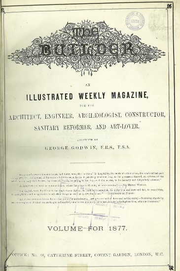 One of the most influential illustrated journals of its era,[1] The Builder now forms a valuable source for understanding not only the architectural developments of the late 19th century but also the social and economic transformations of the time. In 1877 The Builder presents itself as an illustrated weekly magazine ‘for the architect, engineer, archaeologist, constructor, sanitary reformer, and art-lover’.[2] If you’re any of those things, this is the historic journal for you.