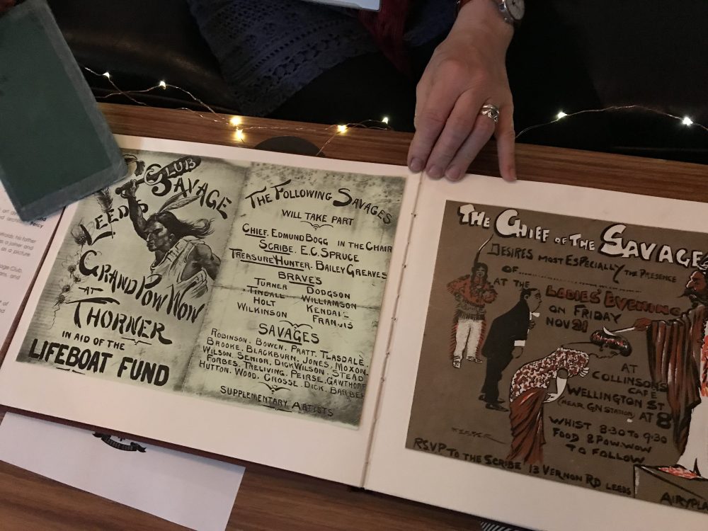Karen brought along a Collection of Literature from Leeds Savage Club, original artwork from members of the Savage Club, a group of artists, writers and musicians meeting at the turn of the century, and including some famous and influential names in the history of Leeds. The art was impressive in style though was clearly ‘of its time’ and today raised discussions around acceptability and cultural appropriation.