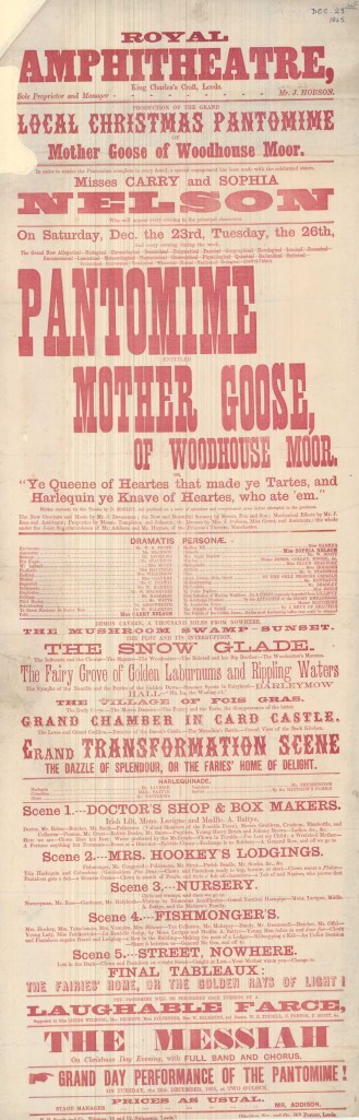 Female impersonators were a common feature on both the amateur and the professional stage in Yorkshire from the end of the nineteenth century, and their popularity and visibility steadily increased until the 1930s. The Leeds Libraries Playbill Archive contains an array of playbills for pantomime and variety theatre which include female impersonators.