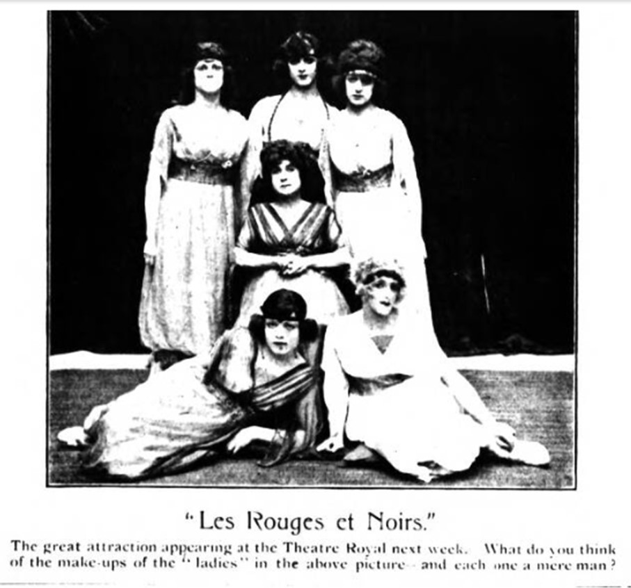 [2] Some female impersonators from the variety stage gained local and national celebrity. Particular favourites of the northern stage were Bert Errol, Harry Tracey, Max Waldon and Quinton Gibson.