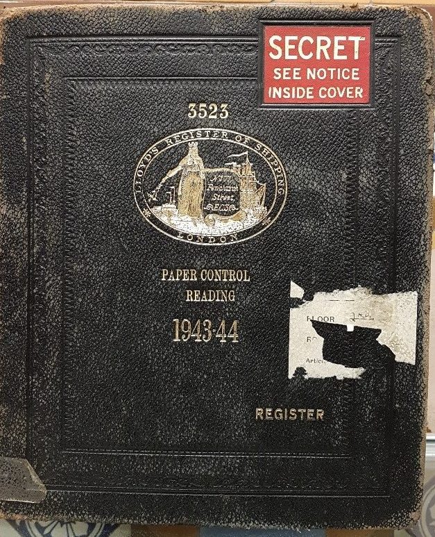 Throughout the war years of 1939-1945 Lloyd’s Register of shipping became subject to the Official Secrets Acts. This resulted in the registers issued at that time having the word ‘SECRET’ embossed on the front cover and also the spine. This can be seen on our copy of the 1943-44 edition shown here.