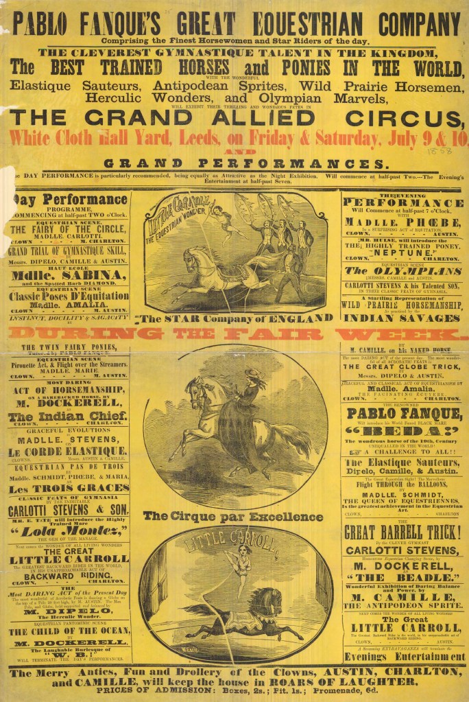 All playbills are taken from the Playbills section of the Leodis website and the text is written by Steve Ward, author of Beneath the Big Top: A Social History of the Circus in Britain