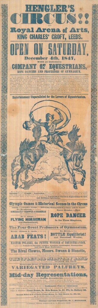 All playbills are taken from the Playbills section of the Leodis website and the text is written by Steve Ward, author of Beneath the Big Top: A Social History of the Circus in Britain.