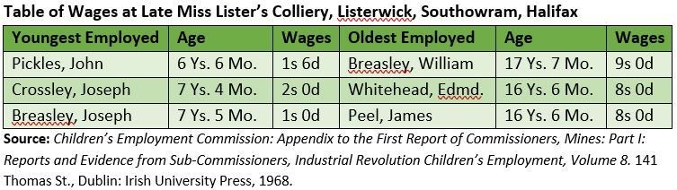 For those of you who watched the BBC TV series ‘Gentleman Jack’ there is evidence from children working at the Rawson-owned Swan Bank and Bank Bottom collieries, as well as ones employed at the late Miss Anne Lister’s Listerwick Pit [4]. There are also details about the ages and wages of some hurriers at Listerwick.