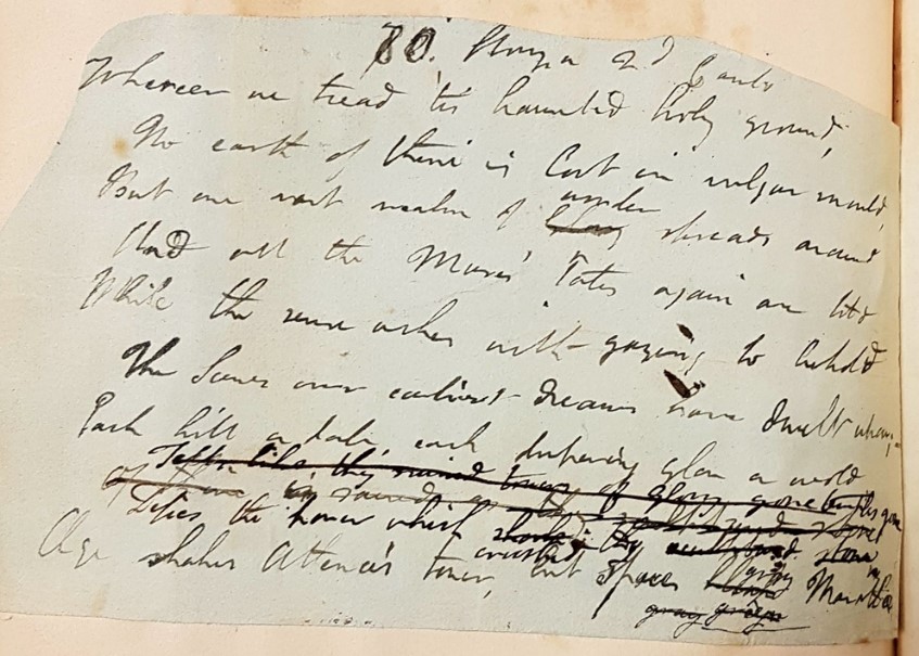As a taste of some of the things we might expect I include here a copy of one of the fragments in the book. This is Canto the second, verse LXXXVIII (88), written by and in the hand of George Gordon, Lord Byron from his epic poem, Childe Harold’s Pilgrimage.