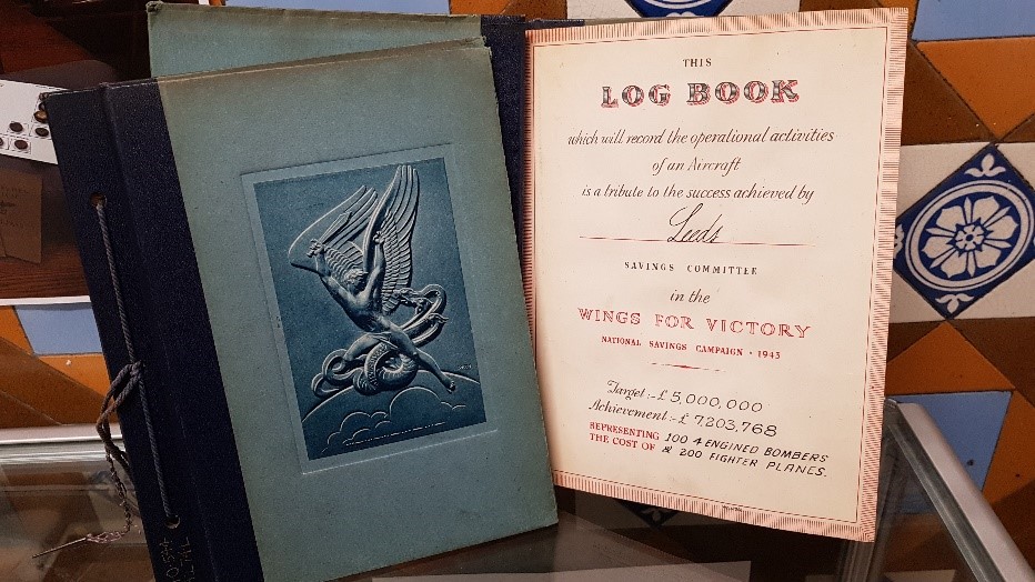 24 aircraft log books were presented to Leeds as a tribute to the success achieved by the Savings Committee in the Wings for Victory campaign. Making poignant reading these log books were donated to Leeds Central Library, many of which record the flight details of missions that were to end with the aircraft either missing or crashed.