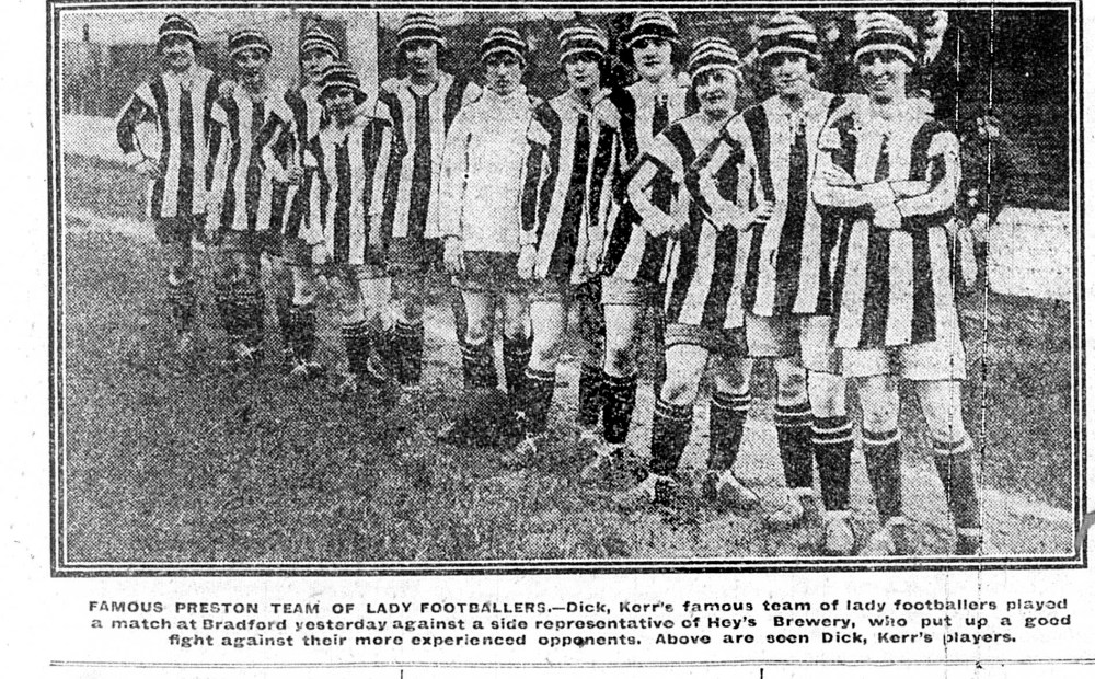 This week on the Secret Library we hear from Josh Flint on the tumultuous year that Hey’s Brewery Women’s Football team had in 1921. 1921 was a fascinating year for Women’s Football and Hey’s Brewery Women’s Football team encapsulated this, as they spent most of the year playing in front of enormous crowds and ended the year by being all but banned from football by the FA. On the 14th December 1921 the FA decided that women’s football should not be played at the same stadiums as the men, effectively banning women from playing competitively. This article will look at the two most important matches in Hey’s Brewery Women’s Team’s history leading up to the disastrous announcement by the FA at the end of the year.