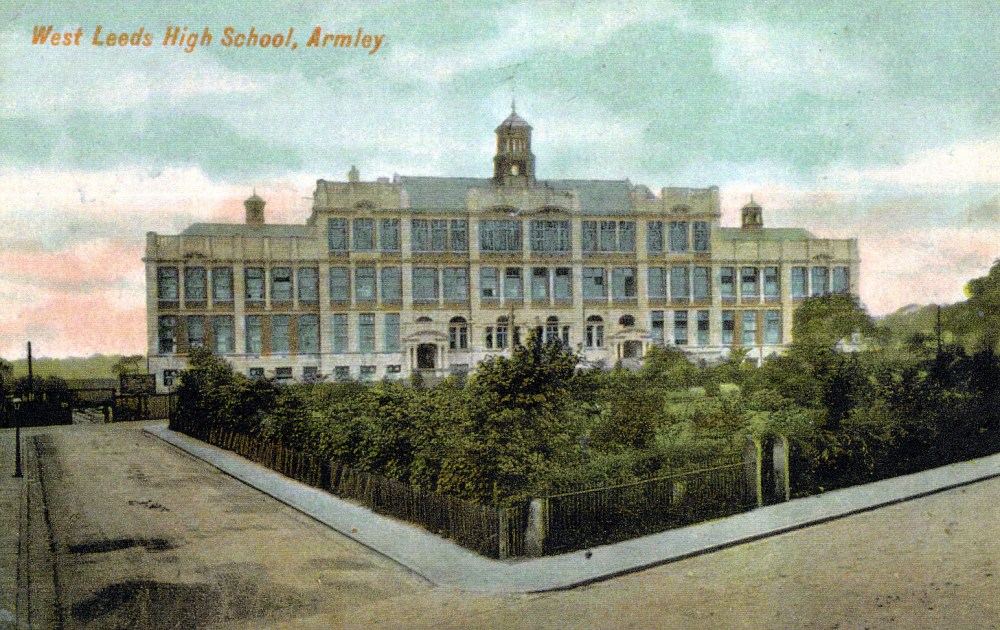1907 Tinted postcard view of West Leeds High School, situated off Tong Road.