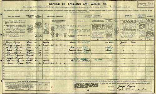 They can be seen here in the 1911 Census, living at Woodhouse Street, with their five surviving children and Joseph’s parents:
