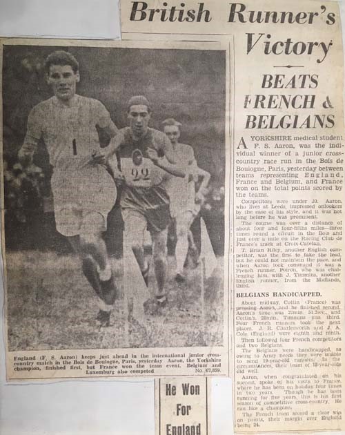 In 1939, when he was a medical student, he travelled just prior to the outbreak of war, to France, where he won the Paris Junior International Championship. It would appear that he was also a fluent French speaker, as there are accounts of him acting as interpreter for the English runners.