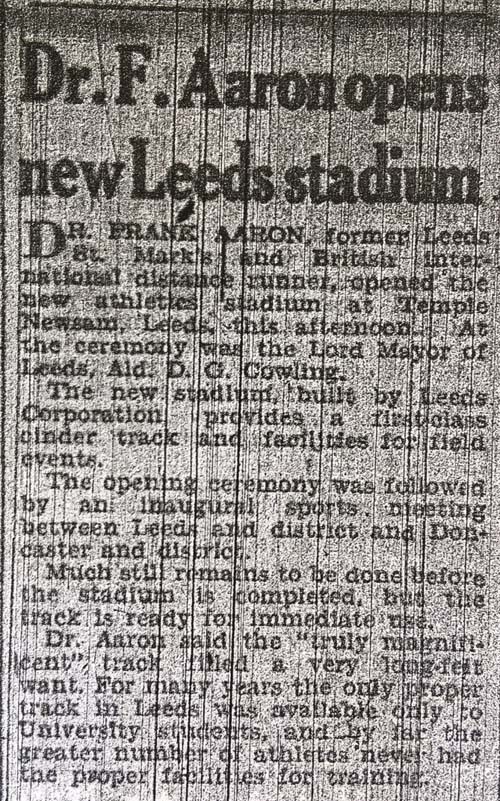 In May 1954, Dr Frank Aaron was chosen to open the new athletics training track at Temple Newsam, off Templenewsam Road.