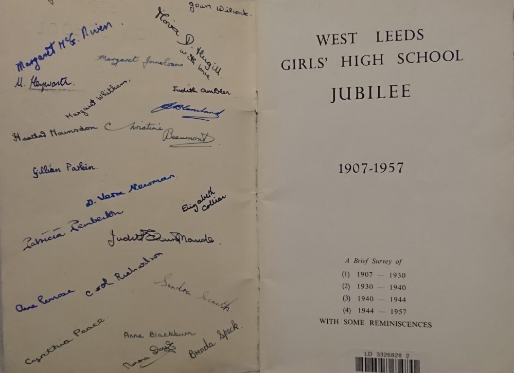 Signed Front Page, West Leeds Girls’ High School Jubilee, 1907 – 1957