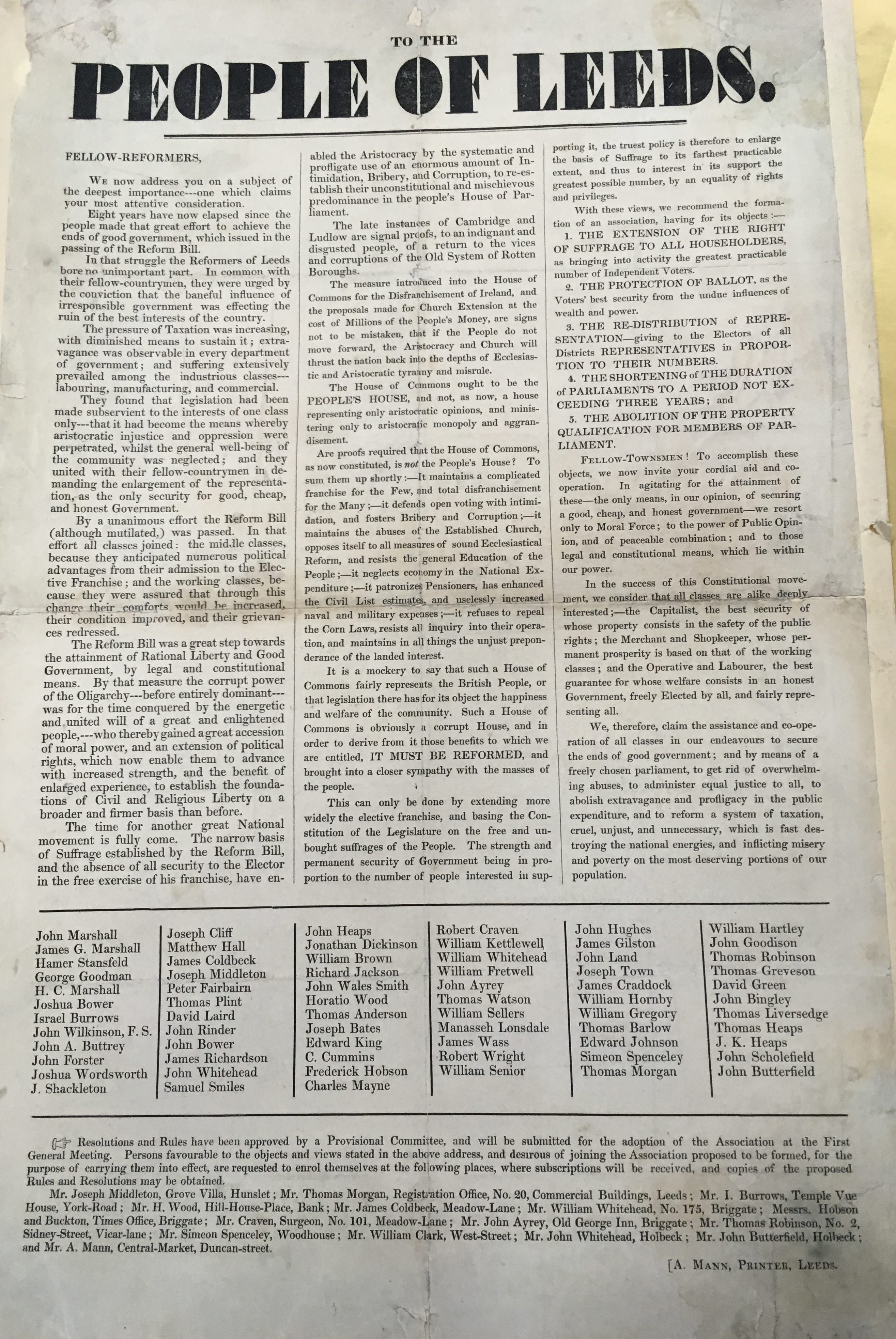 Mann was a printer and bookseller, well-known, indeed centrally significant, in Chartist and Radical circles in Leeds. On the death of her husband James in 1832, Alice took over the family business, balancing her commitment to Radical principles – she was arrested and convicted of selling unstamped newspapers in 1836 – with a no-less political commitment to supporting her young family, through the publication of mainstream books and cartoons portraying a political world that excluded and patronised women like herself.