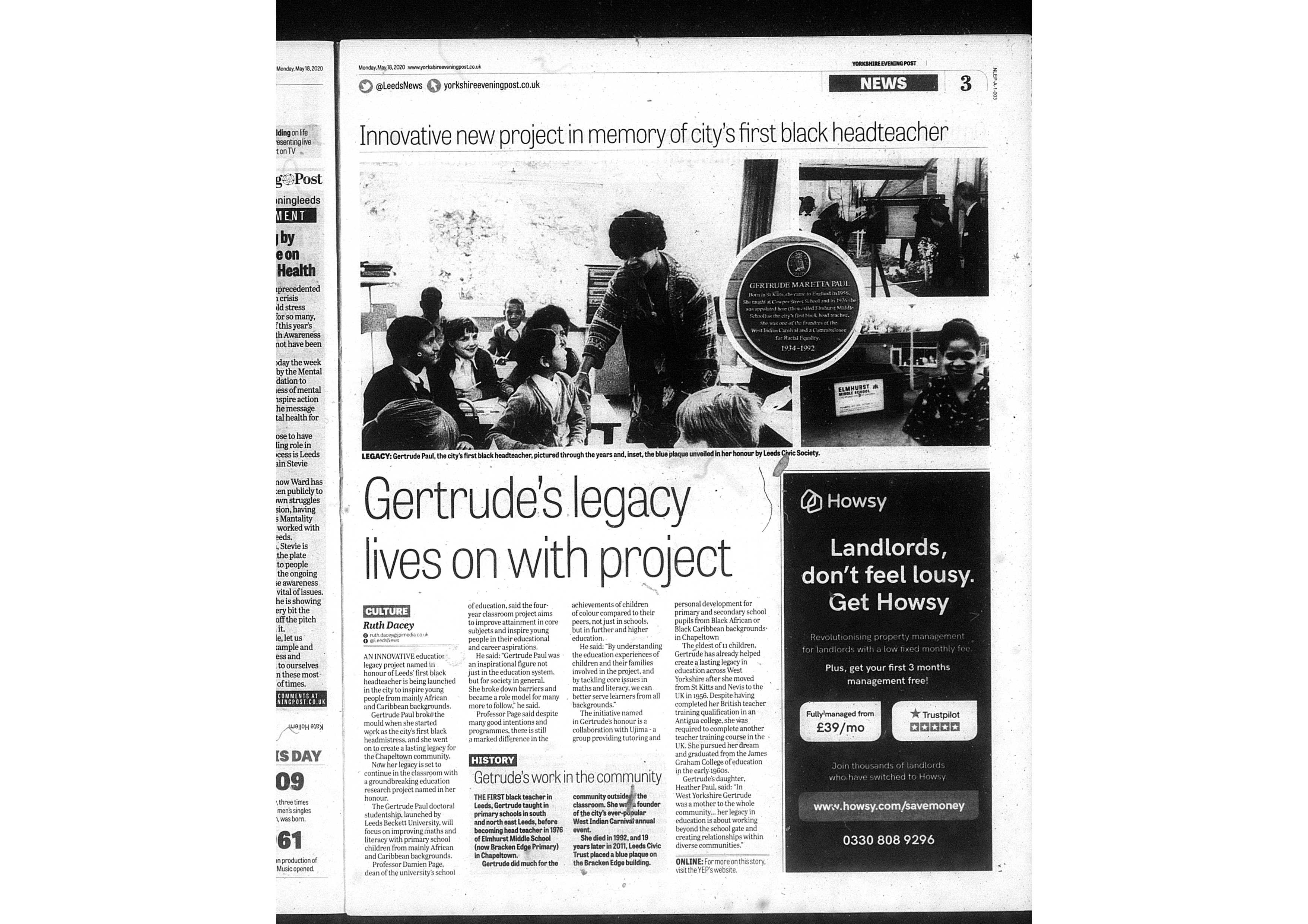 Reproduced below are articles from the Yorkshire Evening Post and Yorkshire Post, which provide more biographical details about Gertrude Paul – click an image to expand and zoom to read the text: